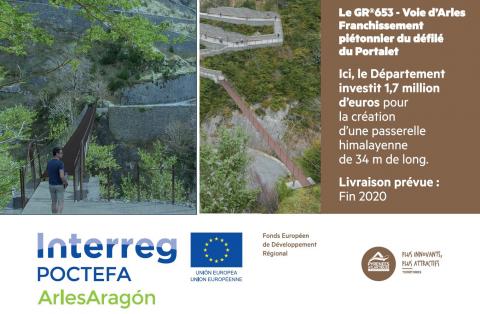 Un deuxième ouvrage, aujourd’hui en construction, consiste en une passerelle métallique de 400 mètres, en encorbellement de la RN 134. Là encore, il s’agit de sécuriser un itinéraire piéton, fréquenté ici par les randonneurs et les marcheurs de Saint-Jacques-de-Compostelle. La passerelle assurera ainsi la continuité du GR®653, également appelé voie d’Arles, entre le pont d’Enfer et la commune d’Urdos, plus en amont.