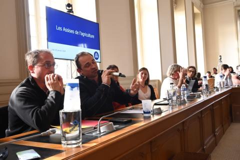La matinée a débuté avec l’intervention de François Purseigle, professeur des universités et sociologue, sur les « agriculture(s) de nouveaux modèles pour de nouveaux défis ». Une rencontre participative ponctuée de temps d’échanges entre les élus, partenaires et jeunes agriculteurs sur l’agriculture d’aujourd’hui et de demain, mais aussi la mise en lumière des enjeux actuels et territoriaux pour mieux cibler et identifier les leviers. A l'issue de la rencontre, les élus départementaux se sont engagés à revenir vers les agriculteurs pour continuer à définir, ensemble, les perspectives de la feuille de route de l'agriculture dans les Pyrénées-Atlantiques.