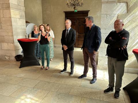 Autour d’Olivier Alleman, étaient présents des représentants d’Unis-Cité, du Service départemental de la Jeunesse, de l’engagement et des Sports.