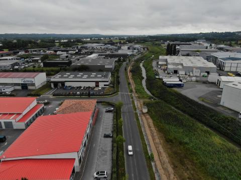 Les travaux de création d’une piste cyclable/voie verte, de la sortie de Bayonne jusqu’au rond-point de Naguile à Lahonce, en passant par le Parc d’activité, approchent de la fin. Quoique non ouvert, les cyclistes y roulent déjà ! Prudence avec les engins !