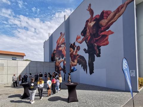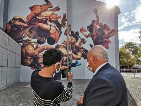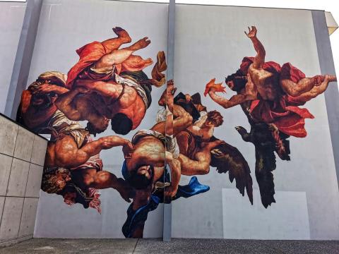 Cette oeuvre est une rencontre inédite entre un street’artiste et un auteur d’oeuvres multimédia. La démarche de Julien de Casabianca consiste à « sortir dans la rue » les collections muséales et les rendre accessibles au plus grand nombre. Pour ce projet, il sélectionne une oeuvre de Léon Bonnat Jupiter foudroyant les Vices, issue de la collection du Musée Bonnat Helleu de Bayonne.