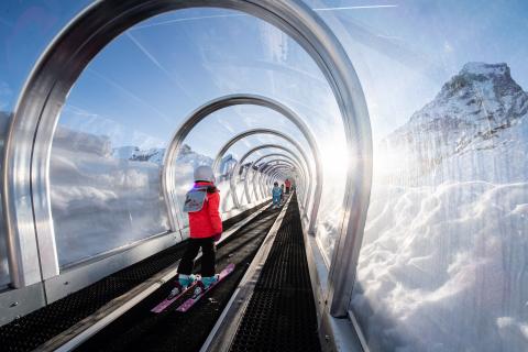 tapis tétras : 133 m de long, couverture en plexiglas, transparent pour une meilleure intégration dans le paysage ; poste de commande à la fin de tunnel pour éviter de rajouter un bâtiment sur le site,