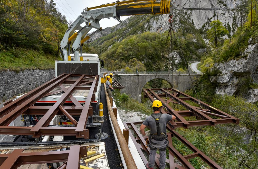Les travaux, commencés en 2022, sont prévus jusqu’à la fin de 2024. Il faut dire que le chantier est soumis à d’importantes contraintes. En effet, il est interrompu chaque année de novembre à mi-avril, afin de permettre le passage des engins de déneigement de la route du Somport. Aussi, des mesures sont prises de mai à septembre pour ne pas perturber la nidification d’un couple de percnoptères d’Egypte, des rapaces protégés.