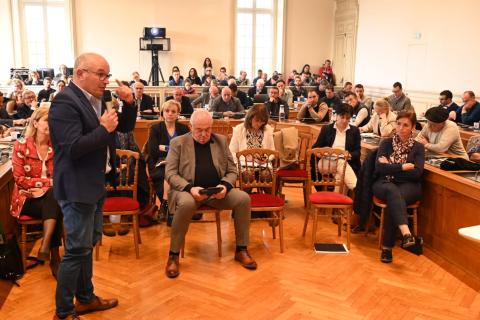 La matinée a débuté avec l’intervention de François Purseigle, professeur des universités et sociologue, sur les « agriculture(s) de nouveaux modèles pour de nouveaux défis ». Une rencontre participative ponctuée de temps d’échanges entre les élus, partenaires et jeunes agriculteurs sur l’agriculture d’aujourd’hui et de demain, mais aussi la mise en lumière des enjeux actuels et territoriaux pour mieux cibler et identifier les leviers. A l'issue de la rencontre, les élus départementaux se sont engagés à revenir vers les agriculteurs pour continuer à définir, ensemble, les perspectives de la feuille de route de l'agriculture dans les Pyrénées-Atlantiques.