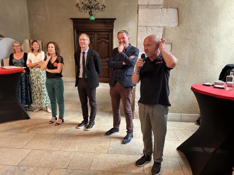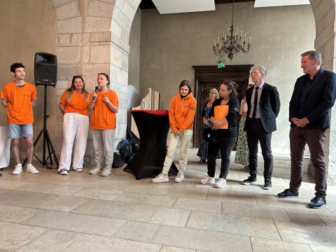 Autour d’Olivier Alleman, étaient présents des représentants d’Unis-Cité, du Service départemental de la Jeunesse, de l’engagement et des Sports.