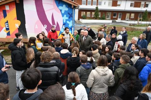 A l’occasion de la réception des travaux de renaturation de la cour du collège, un arbre a été planté par les élus et personnalités présentes.