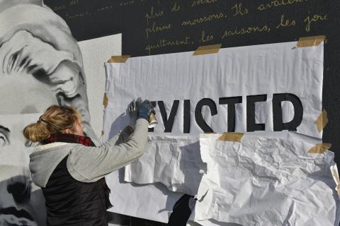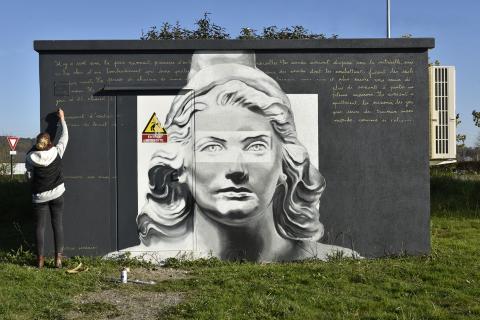 MOG, nom d’artiste de Marika Gysbers, a pour habitude de représenter des figures emblématiques féminines au travers de ses fresques. Pour le dispositif d’art dans l’espace public mis en place par le Département, elle choisit une figure de la liberté : Marianne.